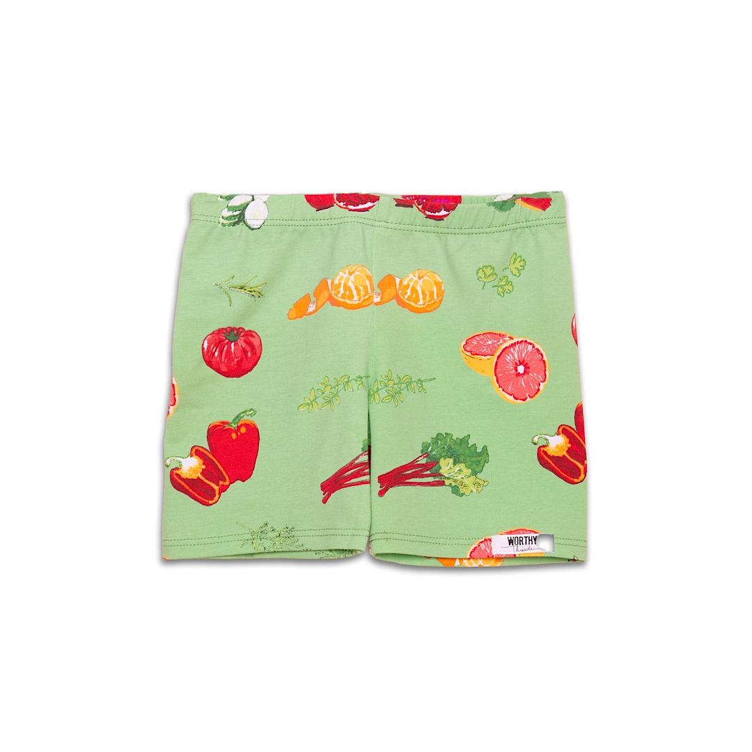 Wear our veggie printed biker shorts under a Green’s Market twirly dress for the perfect summer look!
