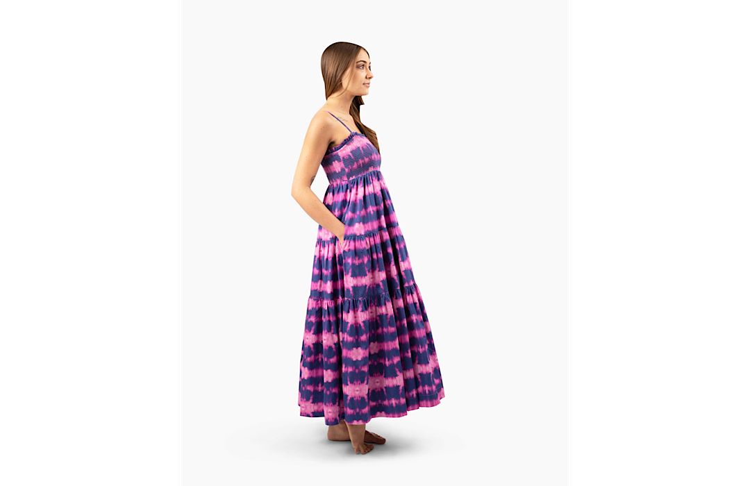 Introducing our newest category women’s dresses! Our adult dress in fuchsia and navy tie dye print is the perfect combination of feminine and unique.