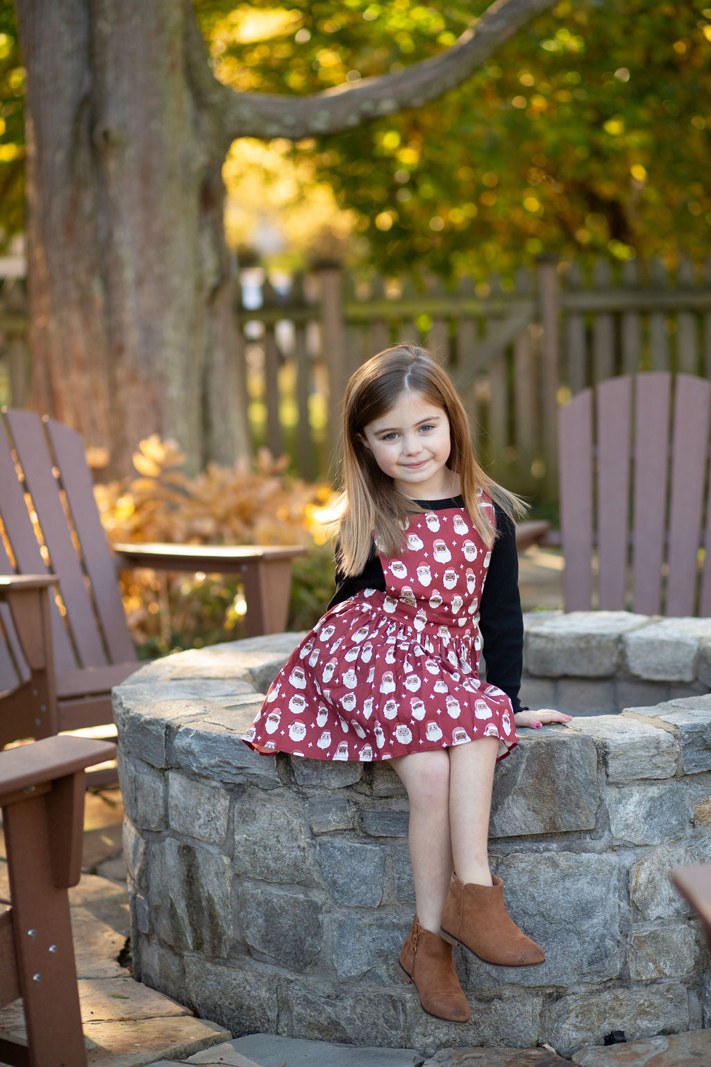 Our signature style in the perfect Christmas print - Santas! The girls pinafore dress will keep your little one fashionable, comfortable, and ready for pictures with Santa